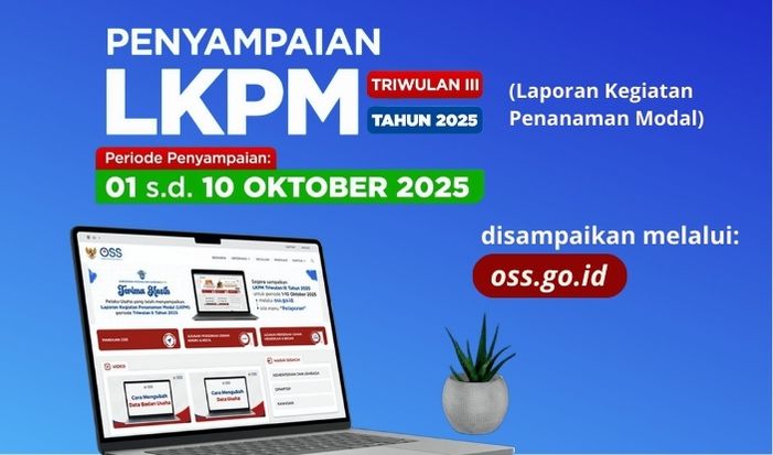 - Pelaporan LKPM (Laporan Kegiatan Penanaman Modal) periode Triwulan III Tahun 2025 (Juli s.d September) akan dimulai tanggal 1 s.d 10 Oktober 2025
